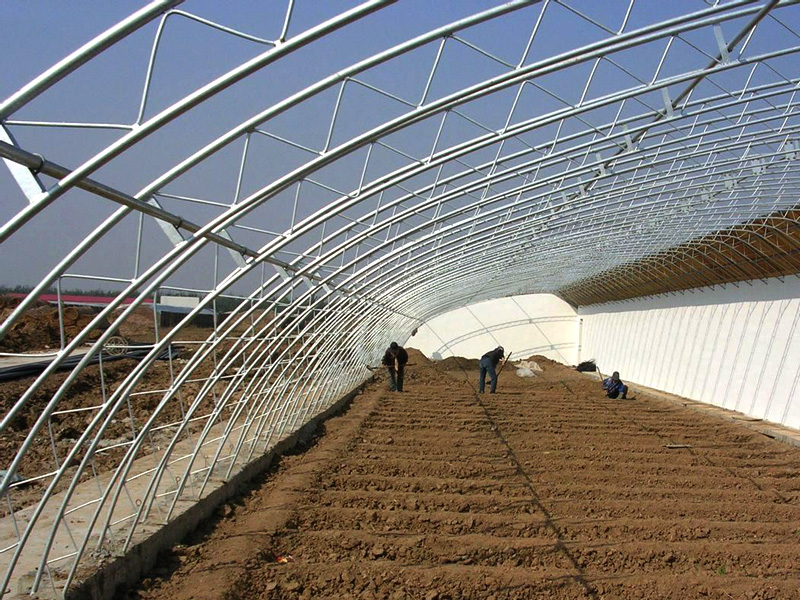 日光溫室是采用較簡易的設施,充分利用太陽能,在寒冷地區一般不加溫進行蔬菜越冬栽培,日光溫室的結構各地不盡相同,分類方法也比較多。按墻體材料分主要有干打壘土溫室,磚石結構溫室,復合結構溫室等。按后屋面長度分,有長后坡溫室和短后坡溫室;按前屋面形式分,有二折式,三折式、拱圓式、微拱式等。按結構分,有竹木結構、鋼木結構、鋼筋混凝土結構、全鋼結構、全鋼筋混凝土結構、懸索結構,熱鍍鋅鋼管裝配結構。